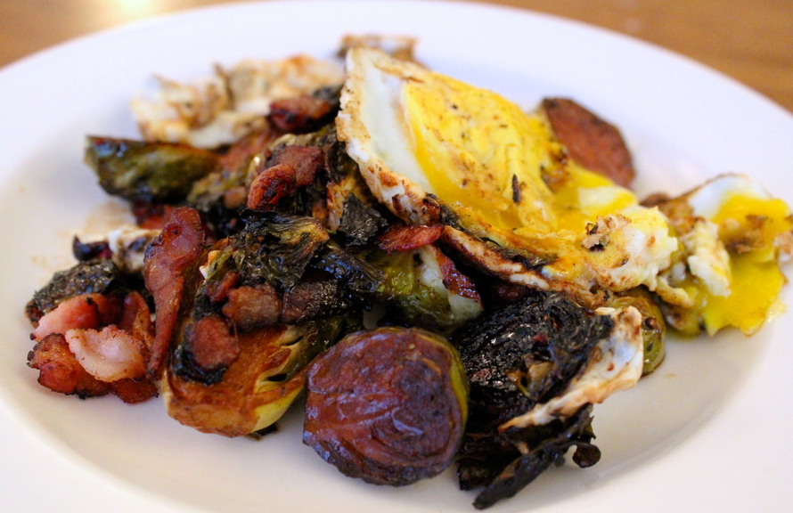 6. Balsamic Bacon Brussels Sprouts with Fried Egg