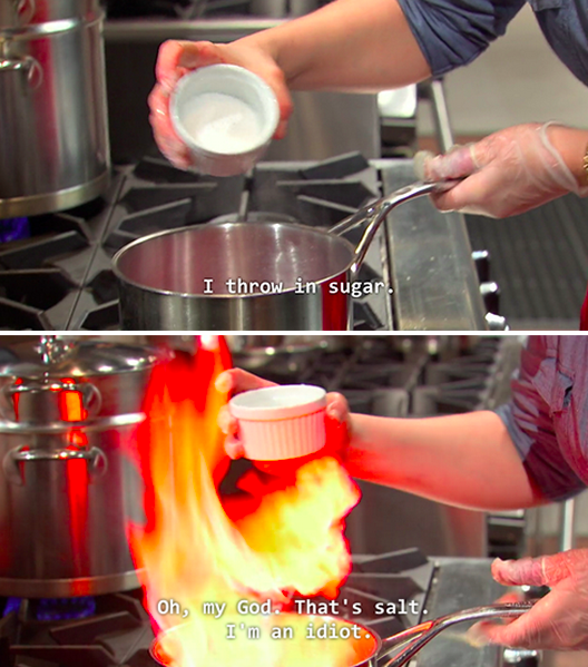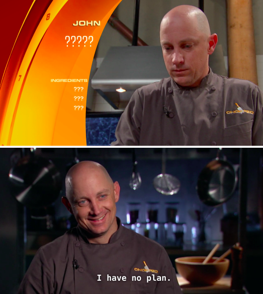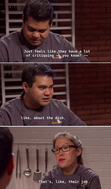 The contestants of Food Network’s cooking competition “Chopped” know a thing or two about operating under pressure for a panel of judges. Between mystery ingredients like squid ink, pickled pig lips and stinging nettles, these chefs have seen it all. Here are some of the ways they handle things when the going gets tough: