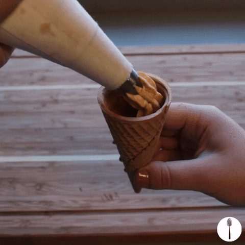 Fill piping bag and pipe into sugar cones.