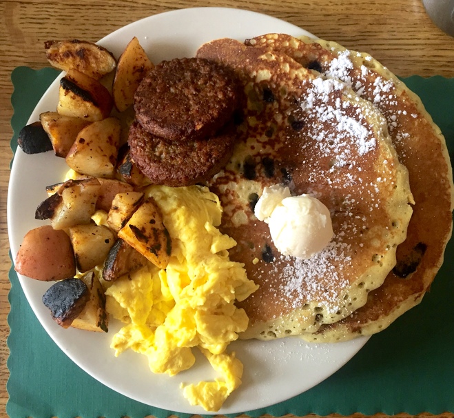 If you want the quintessential New England breakfast experience, then you need to eat at Colby’s. This restaurant is often overlooked because it doesn’t have a website, and is located on a side street in Portsmouth with its entrance off of an alley. I love Colby’s because they have somehow made a menu of breakfast “basics” distinctly New England; for example, by providing vegetarian replacements for meat, and adding blueberries wherever possible. I also love any restaurant that can put all of my favorite breakfast dishes on one plate.