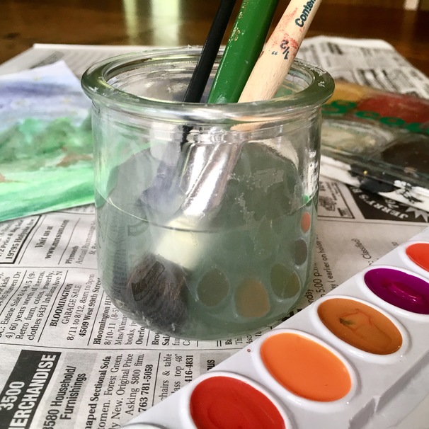 For the casual watercolor enthusiast, anything goes as far as the water cup. So why not use recycled Oui pots? Their sturdy glass construction minimizes the risk of tipping while their clear quality allows you to see precisely when the water should be changed.