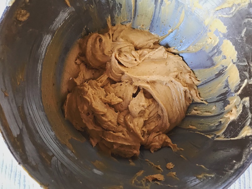Preheat the oven to 350ºF. Then cream together the softened butter, pumpkin, and sugars.