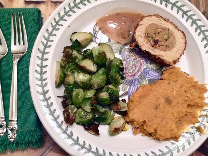 trader joe's turkey-less stuffed roast pork sauce