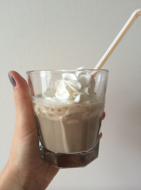 As a previous Starbucks employee, I can say that this is not anywhere near what an actual Frappuccino is made out of, but we’re just gonna go with it anyway. I blended the café latte ice cream with some cold coffee, and topped it with whipped cream. Although it tasted more like a milkshake, and was about as thick as one, it had a subtle, but good coffee taste, and contained enough caffeine to get me going in the morning.