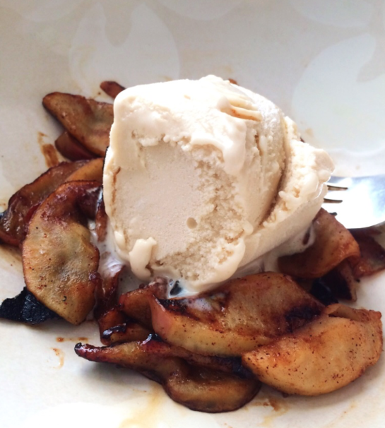 It’s fall, which means apple picking season is in full swing. A great way to use them is by making caramelized apples, which can be a super quick and easy breakfast during busy fall exam days. Just melt butter in a pan, then stir in brown sugar until it melts. Add in peeled and sliced apples (any type works), cover, and let cook until apples are softened. Topped with Brio caramel vanilla ice cream, this breakfast was the bomb dot com.