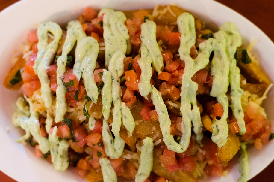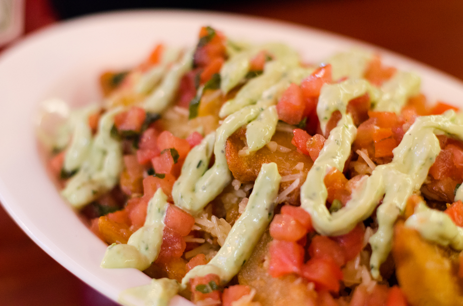 First, we tried the bruschetta fries and despite knowing we had a burger coming, we couldn’t stop shoveling these fries into our mouths. BBC’s thick-cut bruschetta fries are topped with tomatoes, basil, garlic and a creamy pesto mayo.