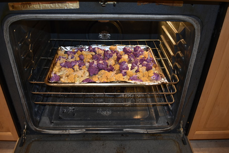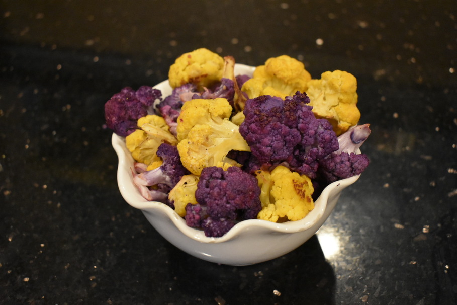 This recipe is my go-to when making any roasted vegetables. It’s quick, simple, and has a refreshing taste thanks to the zesty lemon. In the spirit of Halloween, I substituted a normal white cauliflower for something with a bit more color.