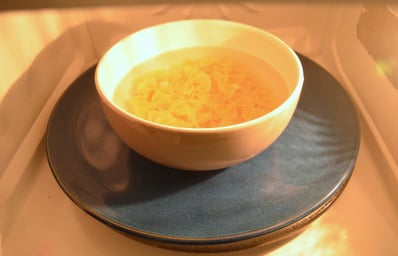 Add water (preferably hot) with salt and pepper to the bowl so the pasta is a couple of inches deep.
