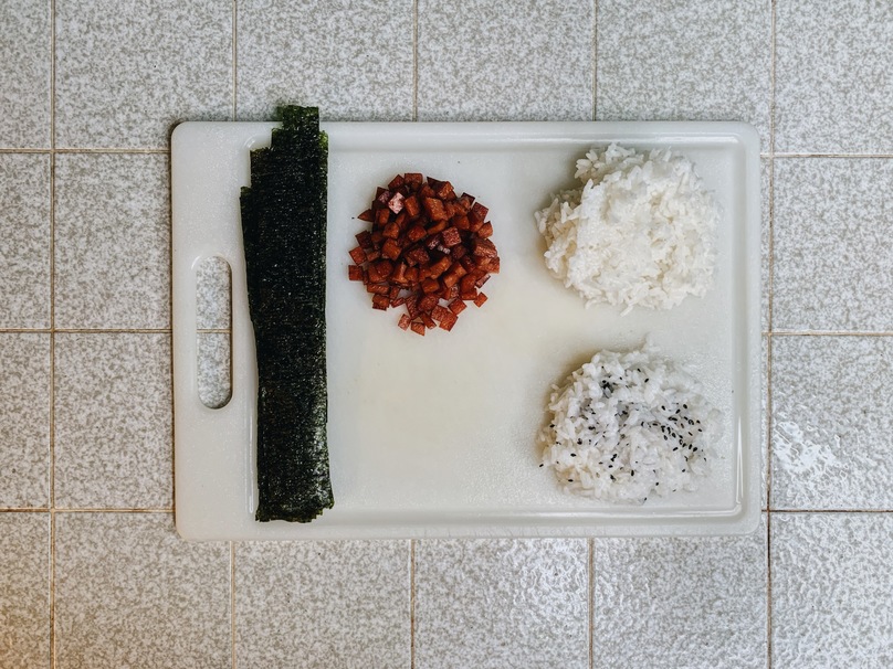 Cook the rice, cut the seaweed into strips and prepare a clean surface to work on. Wash your hands thoroughly and rub some salt on them while they are still damp. You can mix some rice with sesame salt to give your onigiri some variety.