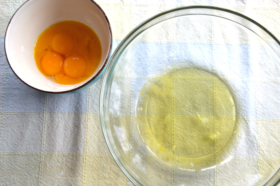 Continue beating eggs until they start to thicken. Add 1/4 cup of sugar gradually.