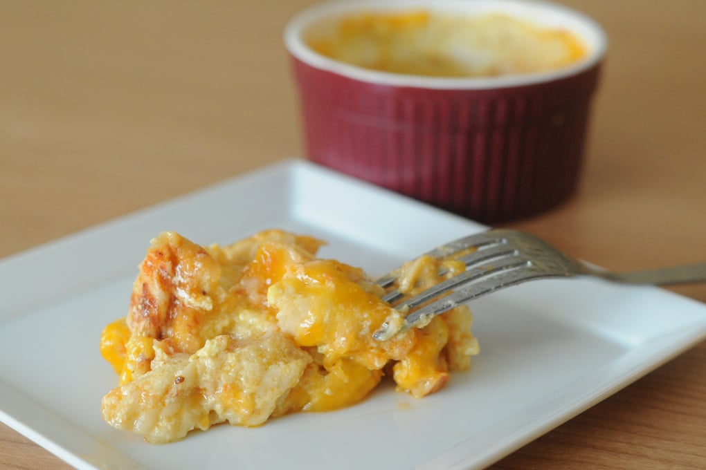 3. Combine milk, egg and most of the cheese in a ramekin and whisk them together.