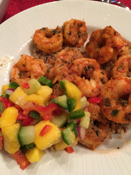 Spoon hot shrimp over quinoa, add a scoop of salsa and dig in.