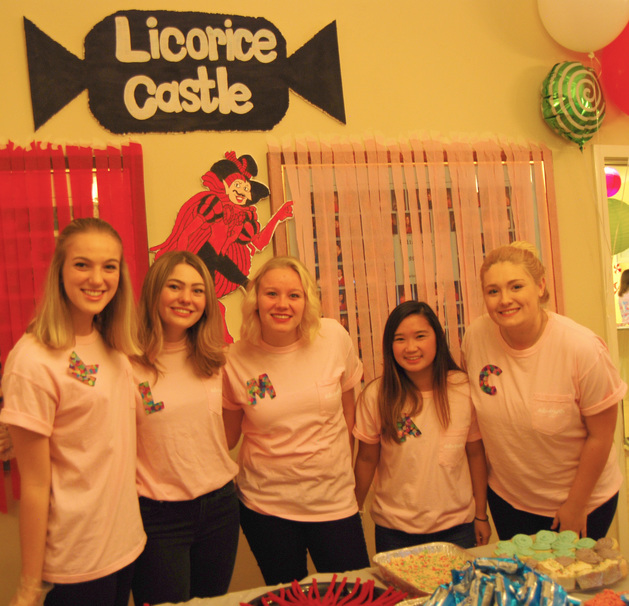 A line of students waited outside the Delta Delta Delta sorority house Tuesday, November 8th for the sorority’s annual philanthropy event, Delta Desserts. The theme of this year’s event was based off the board game Candyland and the desserts were out of this world. As the crowd of people walked in, the first thing they could see were colorful decorations and criss-crossing streamers that lead the way to the never-ending tables of brownies, cotton candy, ice cream, cookies, and cake.