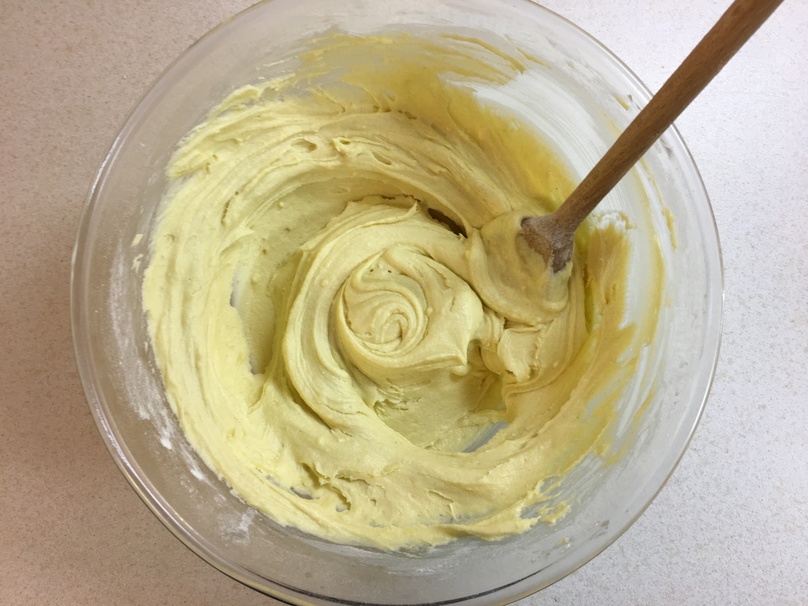 Sift in flour, and stir until combined. Add a spoonful or two of water if necessary to loosen the mix a bit.