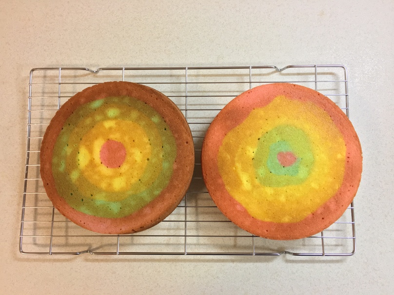 Having just handed in my coursework, I couldn’t wait to get back to baking, and this rainbow cake definitely brightened everything up. It’s given me an excuse to get away from my desk, see some friends, and share a bit of rainbow cake-y goodness. Can you even imagine anything better?