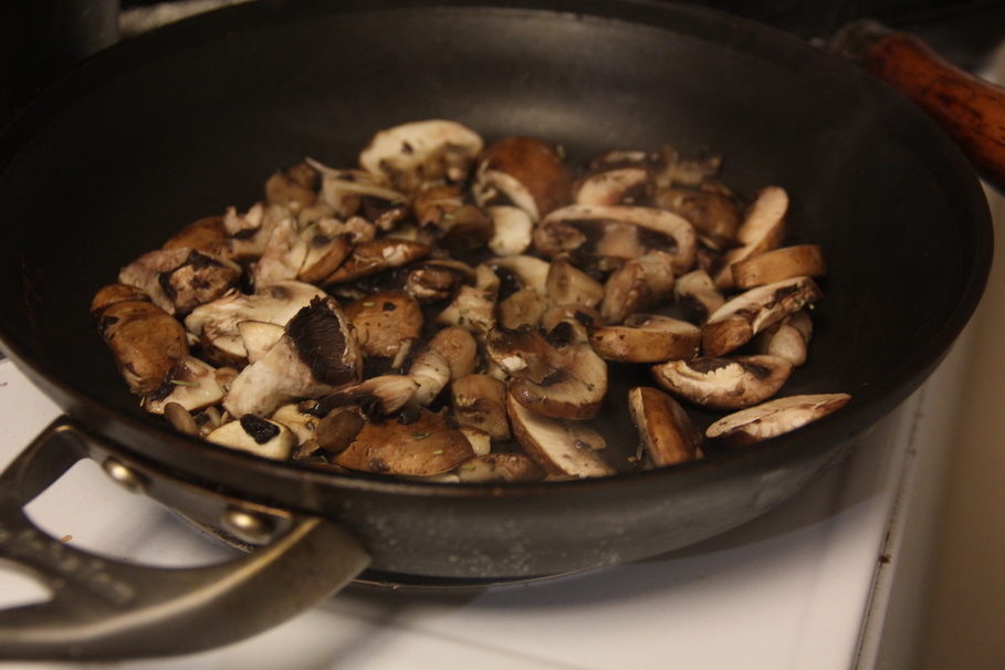 Sauteé garlic and herbs in oil, and then throw in the mushrooms.