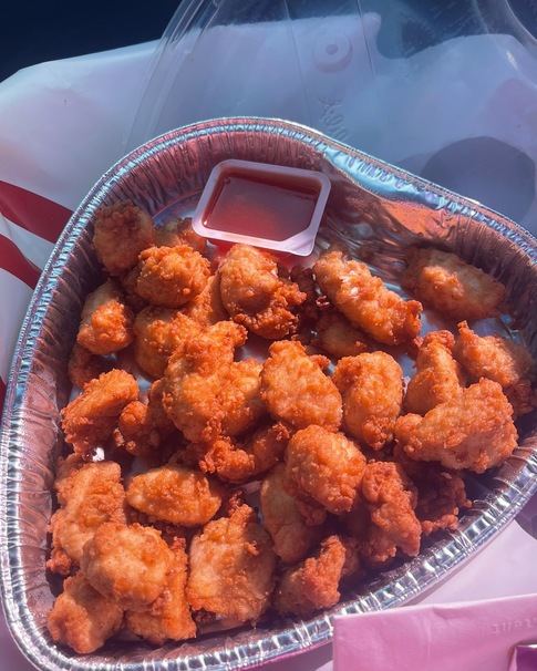 We can be basic when it comes to food — neither of us ever says no to nuggets, and nuggets are a top choice, especially for my boyfriend. So, of course, we decided to do a more casual option this year and do it on our own time, compared to feeling rushed by a waiter. And this was a great decision. We got to get out, took a nice drive together on the scenic route, and had our go-to comfortable food choice.