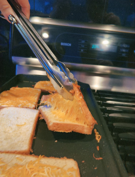 Carefully remove the grilled cheese from the griddle, slice it diagonally for a touch of gourmet presentation, and get ready to experience the perfect crunch and cheese pull.