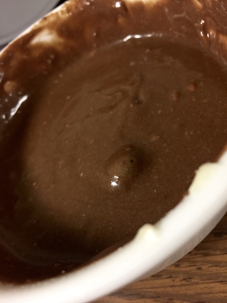 Combine previous ingredients with flour, cocoa powder, baking power, and salt. Mix all ingredients until smooth in texture.