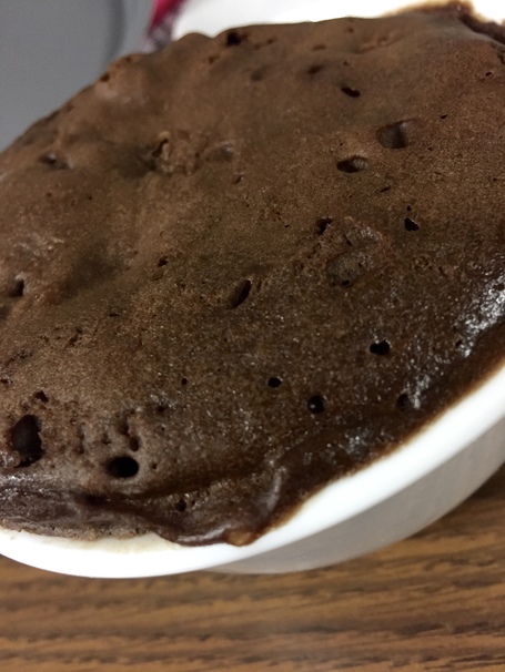 Cover the bowl and put into microwave on high for 2 minutes. (Adjust time to 2 1/2 minutes depending on the power of your microwave). Let cake cool for 5 minutes, and it’s ready to eat!