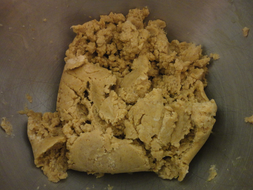 Add 1 cup melted butter and the vanilla extract to the flour mixture. Add in egg yolk. Mix on a low speed for about 1 minute.