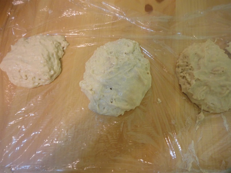 Set the dough on a floured surface and begin to knead, for about 5 minutes. Put the dough in a bowl, cover, and let sit for an hour at room temperature, allowing it to rise a little.
