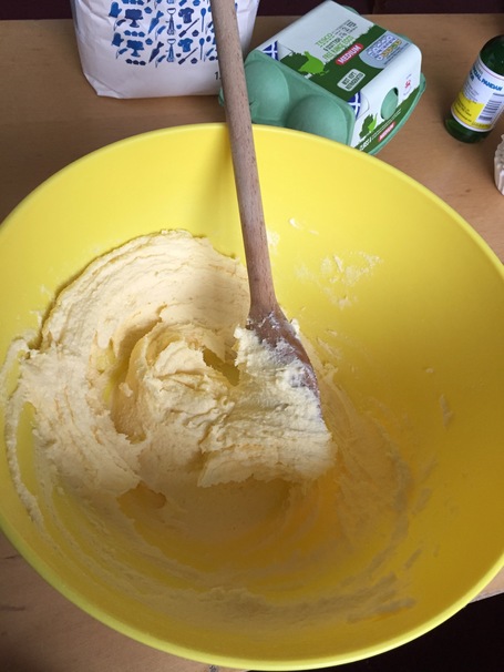 Put in the oven for about 25 mins – be sure to check on them after 20 mins. When ready (you will be able to tell by stabbing it with a knife in the middle – if the knife comes out sticky it needs more time), take out of the oven and leave to cool. Now whilst the cake is cooking and cooling you can get the icing ready.