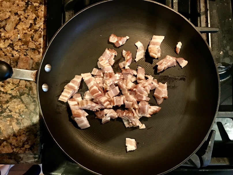 Chop the bacon into one inch slices, but it does not need to be exact. I find using kitchen shears is the easiest method.