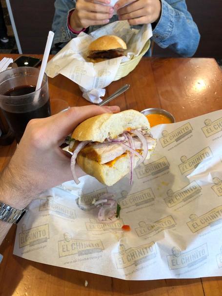 This place is usually called the cathedral of chicharron. Chicharron is fried pork belly and is usually eaten with onions and a slice of sweet potato in a bun. El Chinito makes a delicious chicharron, making their pan con chicharron (chicharron sandwich) one of the best.