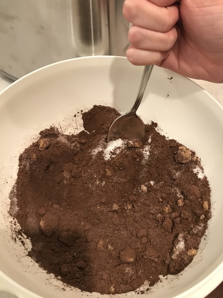 I began by adding the granulated sugar, brown sugar and unsweetened cocoa powder (I used Dark Chocolate) to a mixing bowl and mixed all the dry ingredients with a spoon.