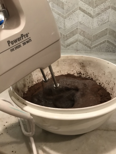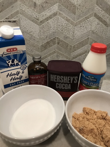 After all the dry ingredients were thoroughly mixed, I gradually added the milk and slowly mixed all the ingredients for about 2 minutes with an electric mixer. After the sugars look dissolved with the cocoa, I added the Half & Half and vanilla into the bowl and mixed to a smooth consistency.
