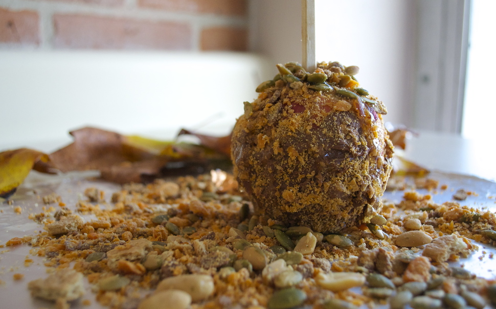 While Linus waits for the great pumpkin, try biting into this great “pumpkin.” Smothered in Butterfingers, pumpkin seeds, and peanuts, this apple will satisfy the whole gallery’s cravings.