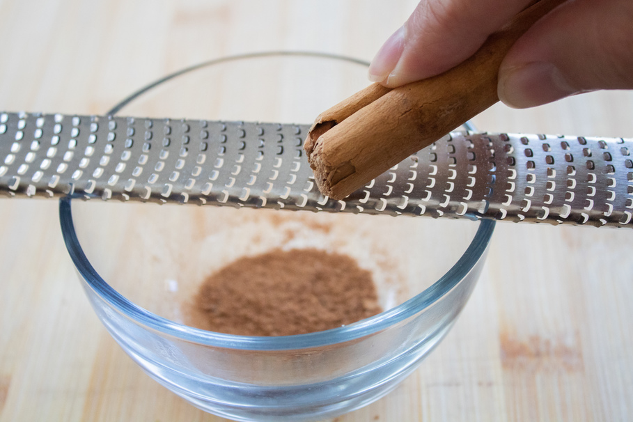 If you have a Microplane or a spice grinder, I HIGHLY recommend grinding the cinnamon and nutmeg. It elevates this recipe by adding a subtle, but superior flavor. However, ground cinnamon or nutmeg will work fine if you do not have it, as shown with the ground nutmeg that I used.