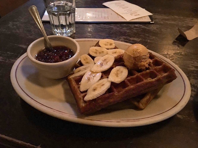 From bacon maple syrup and sliced bananas to peanut-butter butter and decadent chocolate waffles, the Fat Elvis Waffles give you all the energy and sugar you want and need for breakfast (or really any time of day).
