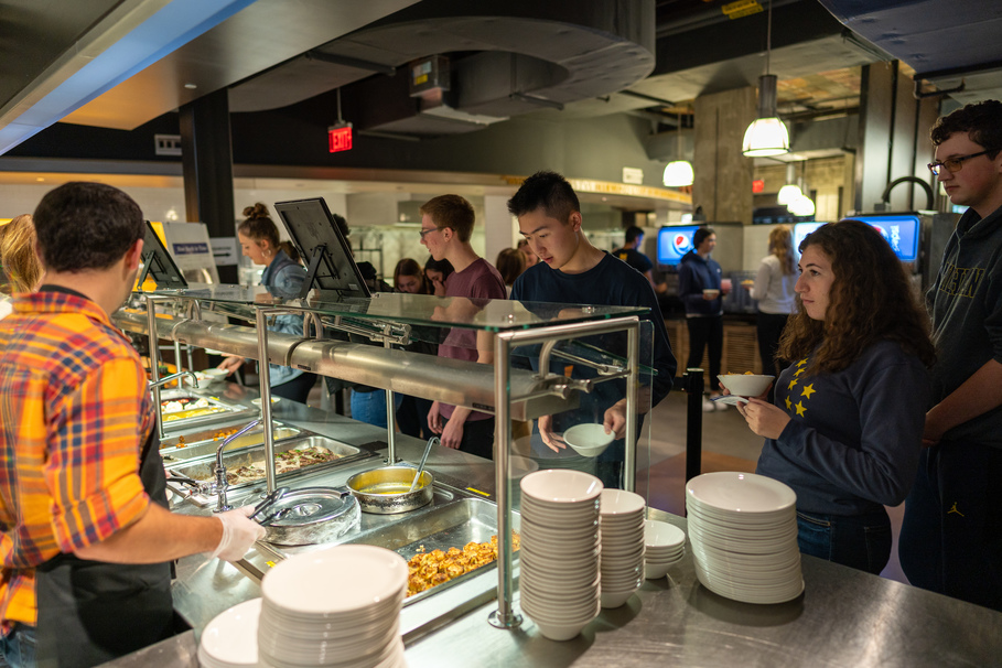 Any leftover food from Michigan Dining Halls is donated to local food pantries such as Maize and Blue Cupboard, Food Gatherers, and Food Recovery Network to both reduce food waste and give back to the local community.