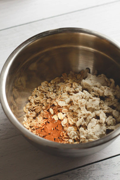 Preheat the oven to 350 F. Combine the leftover cashew pulp from making the cashew milk, squeezed as to get rid of any extra liquid with the oats, salt, and cinnamon in a medium bowl. Stir to combine.