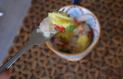 1. Mix eggs and milk in a coffee mug and microwave for 1 minute to partially cook eggs.