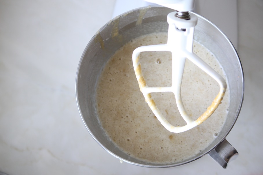 Theoretically, this results in more binding within the mix and a more stringy or elastic texture of dough. So, how do you know when to stop stirring the batter? Ideally, you should keep an eye on the mixer, and as soon as the batter is uniform (aka it has little to no streaks of flour remaining), you’re good to go.