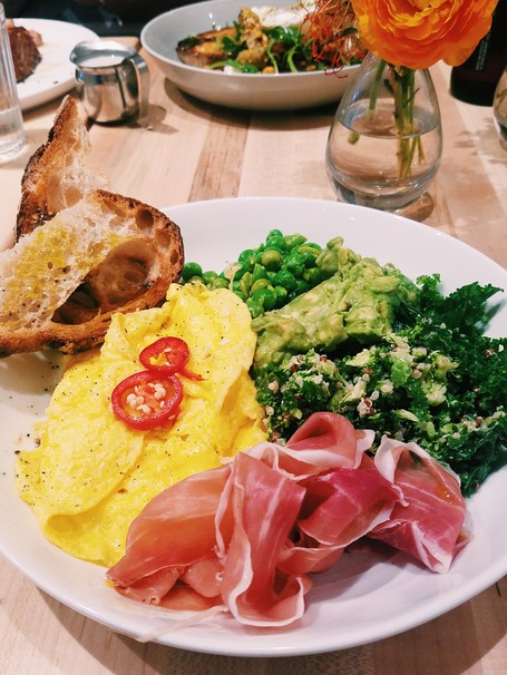 Obviously, something titled the Golden Folded Eggs has a certain reputation to defend. Luckily, it does not disappoint. The prosciutto (as always) pairs well with the eggs, blending Italian staples with your standby breakfast. For the peak brunch experience, add toast. It’s the perfect tool for dipping, scooping, and making an impromptu breakfast sandwich.