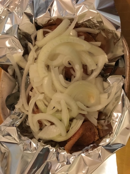Place the onions on top of the meat.