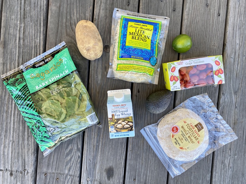 First, dice up your potato to your preferred size and roast it in the oven or air-fryer. Then, warm up your tortillas and cook your egg whites how you like them. I recommend adding in vegetables, such as spinach and tomatoes, to add more flavor to your breakfast. Once your potatoes are roasted and eggs are cooked, fold them into your tortillas and add in your favorite toppings, such as cheese, avocado, and salsa.