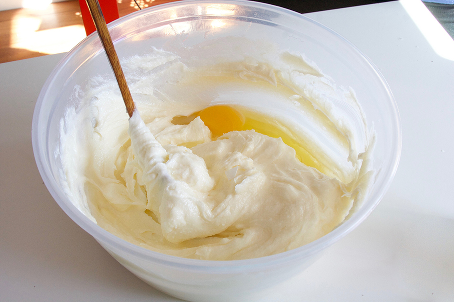 Beat in eggs one at a time. Add vanilla.