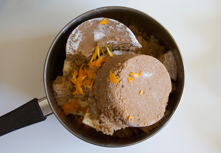 Place honey, brown sugar, orange zest and 4 sticks of butter into the pot. Cook until butter has completely melted, stirring as needed to prevent burning.