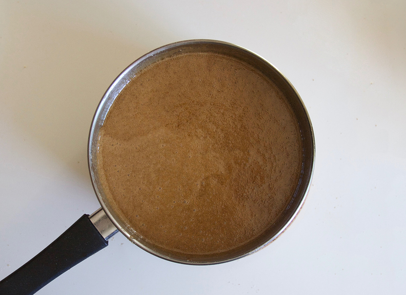 Once the butter has completely melted, cover the pot and boil the mixture for 3 minutes. Stir once every minute to prevent burning.