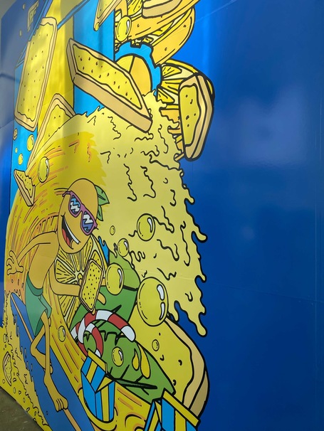 When we entered the venue, we were greeted by Pop-Tarts employees and an array of art and prints created by Lyrical Lemonade fans. These included photos of the iconic lemon that Lyrical Lemonade is known for. In the center of the venue, there was the huge limited edition Lyrical Lemonade x Pop-Tarts box. This box was truly eyecatching and is the largest Pop-Tarts box ever made.