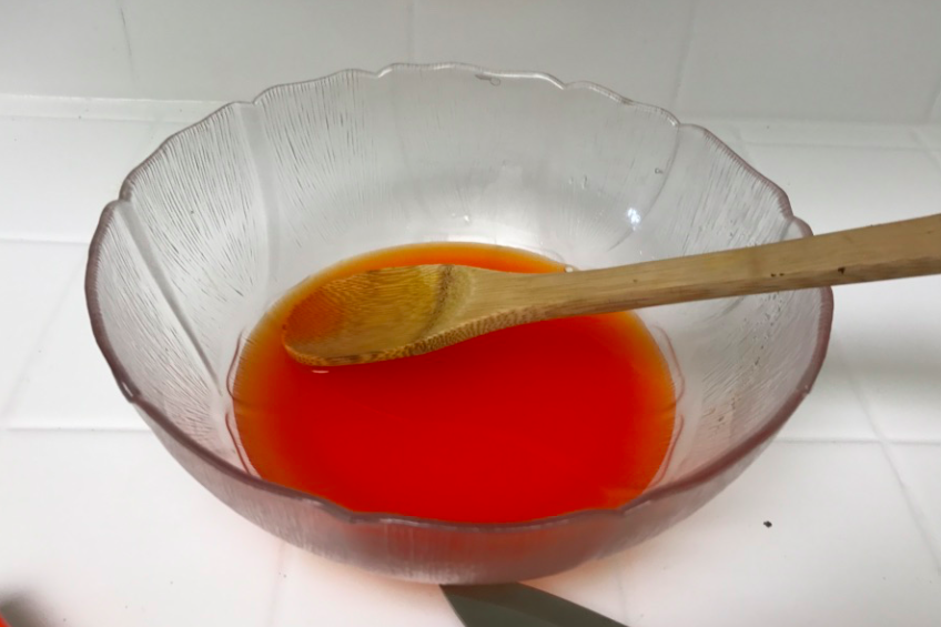 Boil a cup of water and add it to the Jello-O mix and stir until the mix is dissolved.