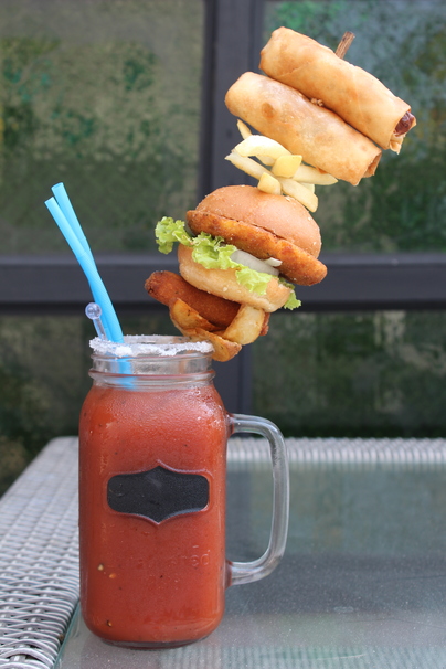 A place where you bid your worries goodbye. It has special burgers with red and green buns, This is a place where you come to have fun. A genuine place with a special method of cookin’, It’s a café that specializes in selling amazing chicken.”