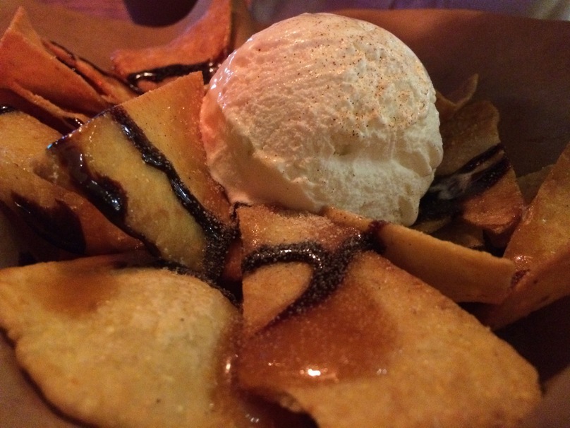 The Indian menu has desserts that Americans should be jealous of: chocolate caramel toastadas, vanilla ice-cream, and The Chocodilla. The toastadas are sweet shortbread cut in nacho shapes, dusted with cinnamon powder and topped with ladles of chocolate and caramel sauces, all finished with a huge scoop of vanilla …mmhmm. A Chocodilla is a warm soft tortilla loaded with melted Belgian chocolate, served hot.