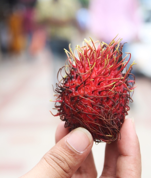 Litchi’s lesser known cousin, Rambutan or Chom Chom, although similar in appearance, is much denser in taste. The skin concealing the sweet flesh is covered in spikes, and I won’t lie, it is amusing to touch the outer layer.