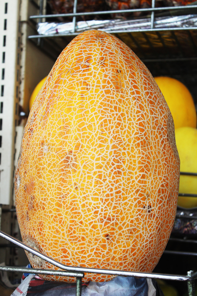 Galia Melon is enormous in size with the average weight being one kilogram. The flesh is light yellow to dull orange in color and tastes mushy and wonderfully sweet. It is a cross between a cantaloupe and a honeydew melon, so, you’re enjoying the wholesomeness of both of these fruits. Just saying.